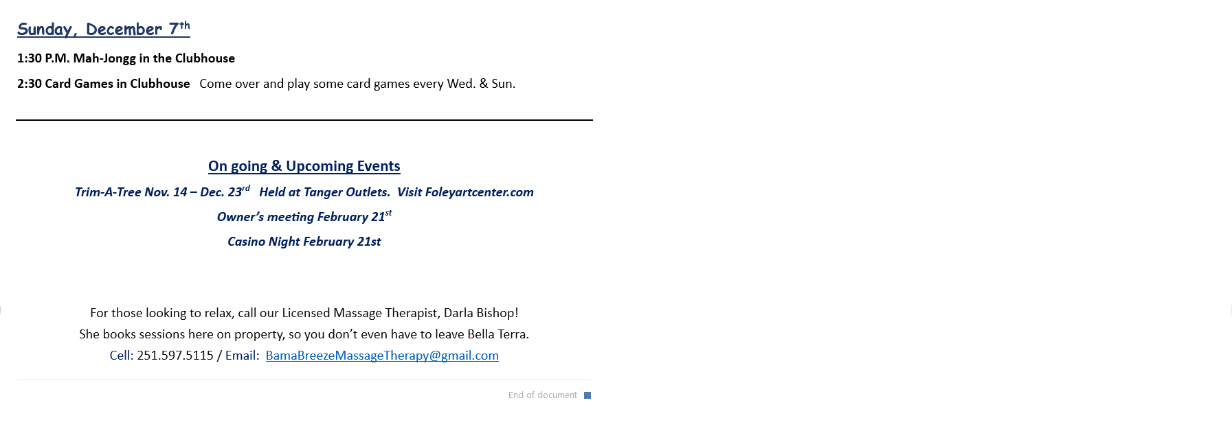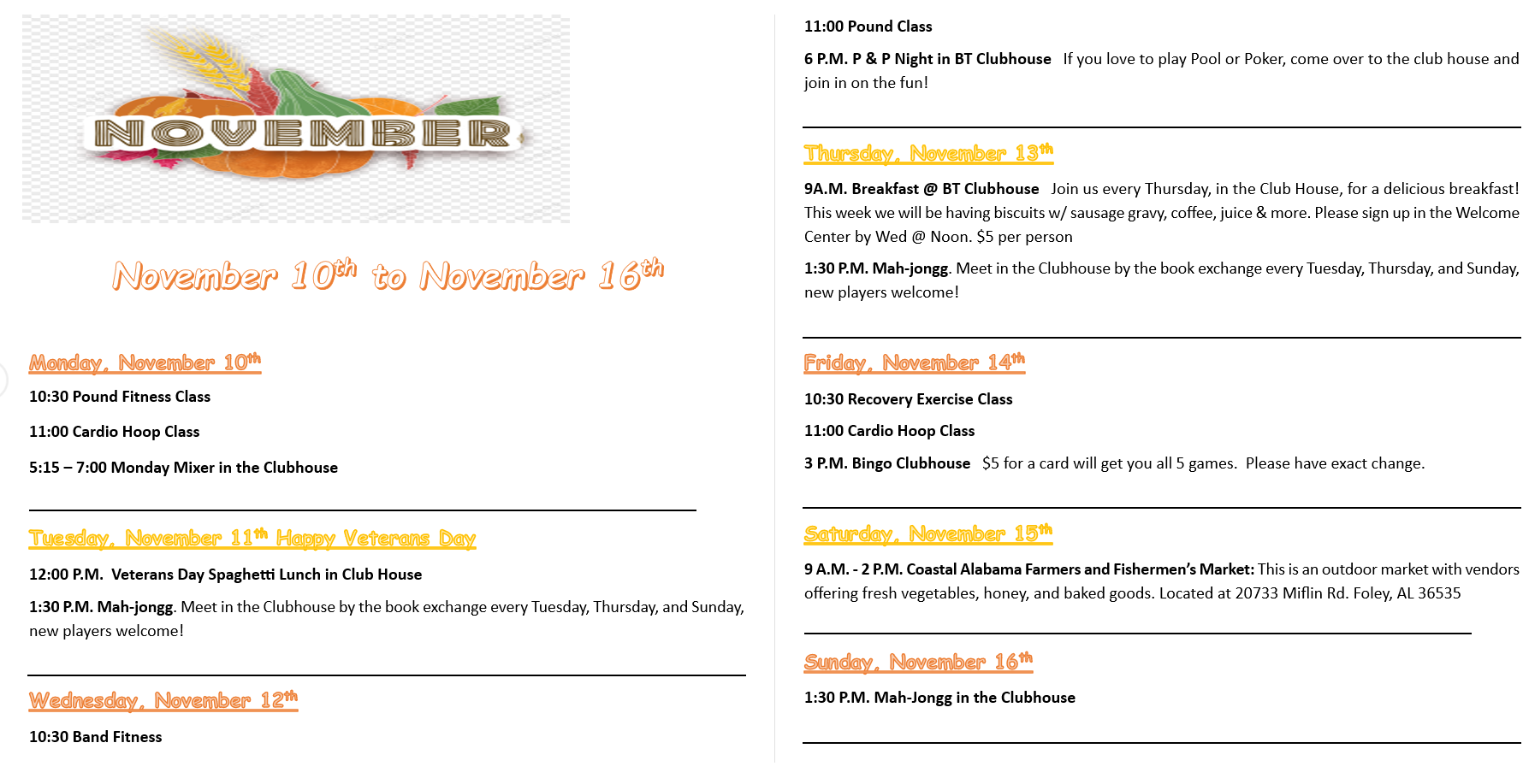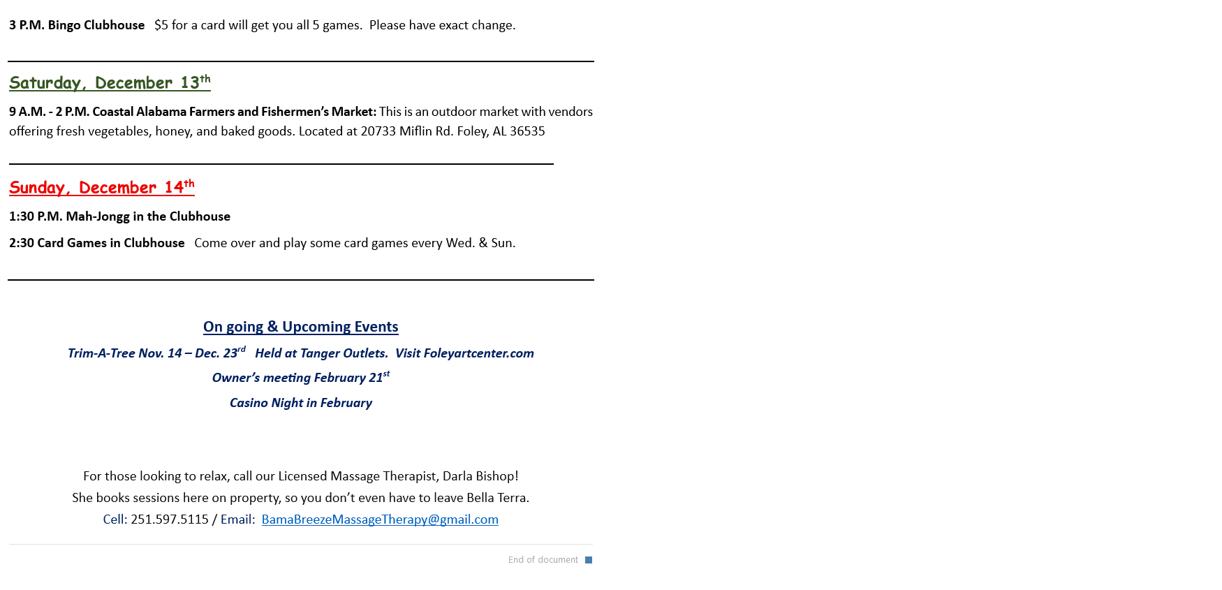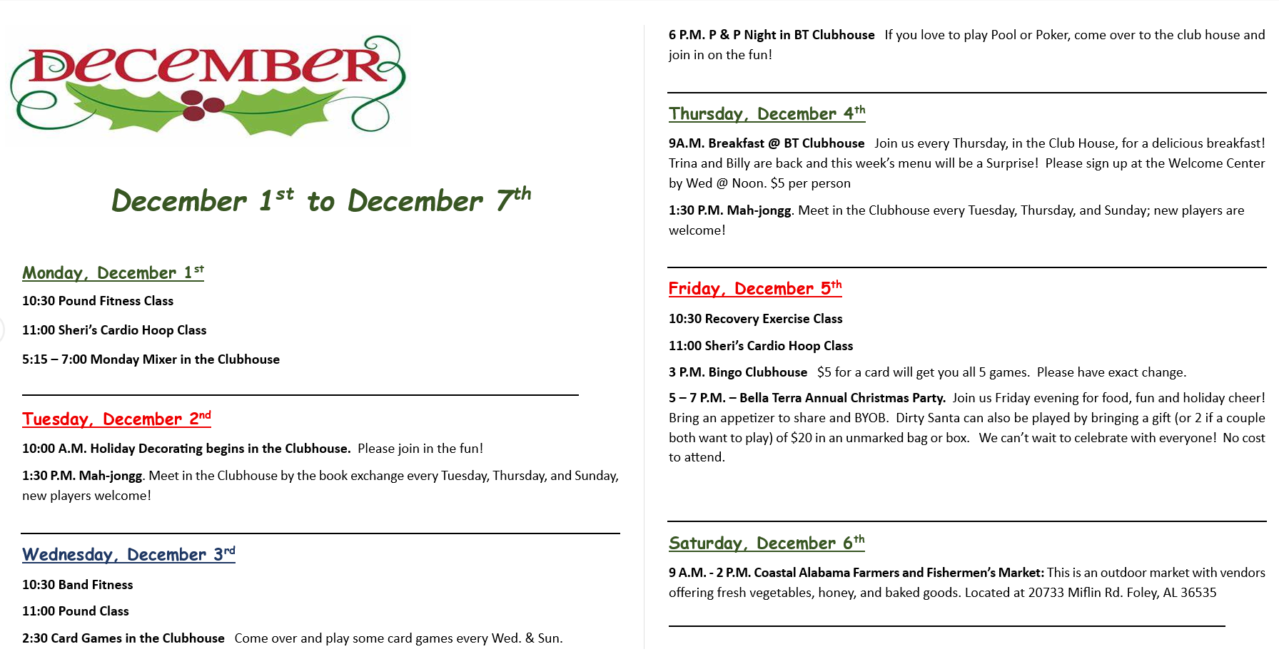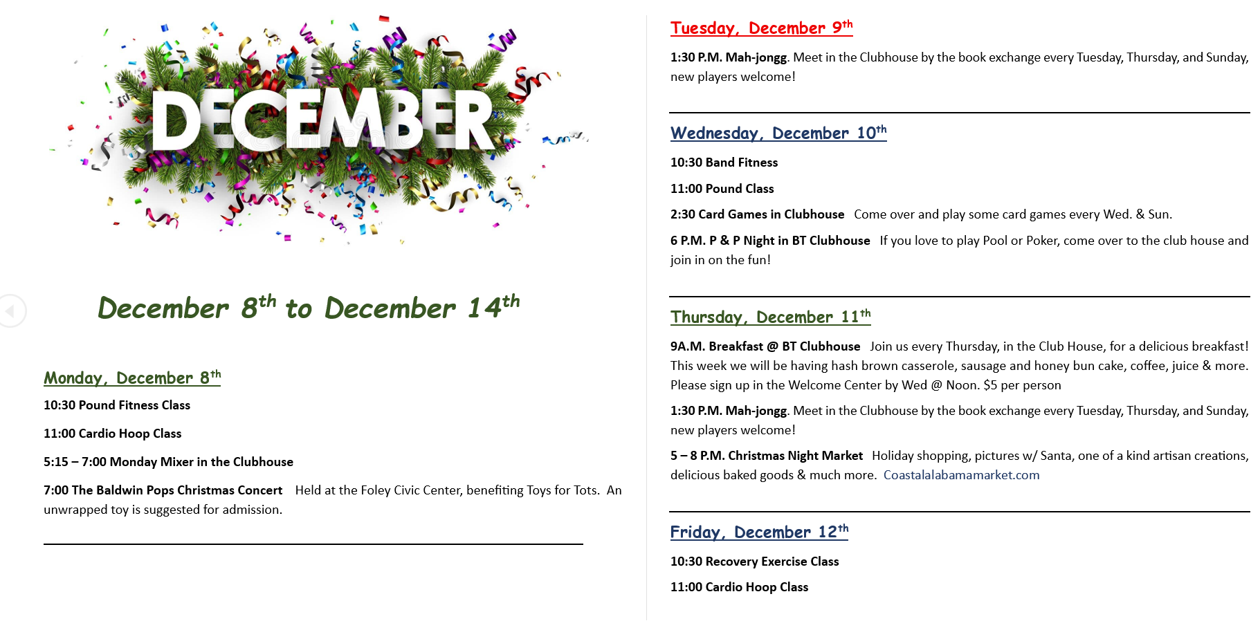 Activities for the Week of December 1st & 8th