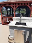 Welcome to 617 Sereno Street! Looking for the perfect spot to park your coach while exploring beautiful Southern Alabama? This premium lakefront lot is North facing and offers several luxury amenities that provide comfortable R & R! After a fun day walking the beaches, take a seat in the two wood Adirondack chairs nestled around a cozy propane fire pit. Your lake front view brings you closer to our elegant cascading water fountains and magnificent clubhouse. While seated in one of the two metal chairs, the center table adds the perfect fit for your morning coffee! For your dining pleasure or game night enjoyment, take advantage of the oversized dinette table and seating for six inside the enclosed gazebo. This lot also features four composite Adirondack chairs that can move around the lot easily. The granite bar and sink with running water is ideal for mixing your perfect cocktails! Come see how we live at beautiful Bella Terra! Please note the green egg, grill, and umbrella are not available for guest use. Monthly reservations permitted “at time of reservation”. Initial daily or weekly rentals may extend but not at the monthly rates. A 2-night minimum is required on nightly reservations, and a minimum 4-night stay is required over holidays. When available, propane for the fire pit sold separately at the Welcome Center. The casita on site is for owner's use exclusively. Per owner's request, personal wood burning fire pit/fireplace is not permitted.