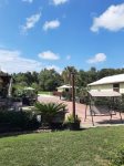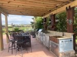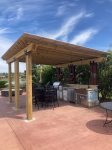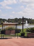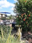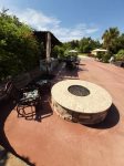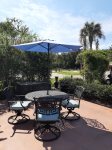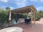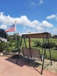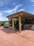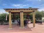 If you want to be mesmerized look no further! Welcome to 493 Portofino Loop. This premium, East facing, lake front lot offers a spectacular view of one of our cascading fountains. What better way to experience the setting than sitting in a swing for two! Around the oversized firepit there are two additional chairs to help with your comfort as you relax after a fun day exploring the area. The granite surrounding the natural gas fireside provides ample space for your favorite refreshment! If you prefer, take a seat at the bistro style bar to mix up your beverages and serve hors d'oeuvres! The kitchen area of this lot is the Taj Mahal cooking space! The granite countertop offers ample space for food preparation, a deep sink, natural gas grill, stove top, green egg, and a mini fridge. After a fun evening pulling your BBQ together, dine in at the round table with four comfortable chairs, and a table umbrella. This lot also offers additional paved space for those who may have bicycles, a motorcycle, or a golf cart. This lot is situated in our Southwest corner of the resort next to one of our luxury bathhouses. Laundry appliances and a dog washroom are also available in this building structure. Enhanced landscaping coupled with a flowering archway and garden water feature add to this exquisite lot. A key to the natural gas firepit is available at check in. Cushions to the bar stools and dining set are available in the bin located next to the table. Please return cushions during inclement weather and upon departure. Guests are also welcome to use the water hose at the pedestal. Please note the large telescoping umbrella is not available as part of the guest rental.