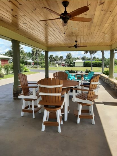 Under the patio, you’ll also find a stylish high-top table with four swivel chairs—ideal for dining, socializing, or enjoying your morning coffee. Unwind in the cozy seating area with a plush loveseat and matching chair, complemented by a convenient side table for added comfort.