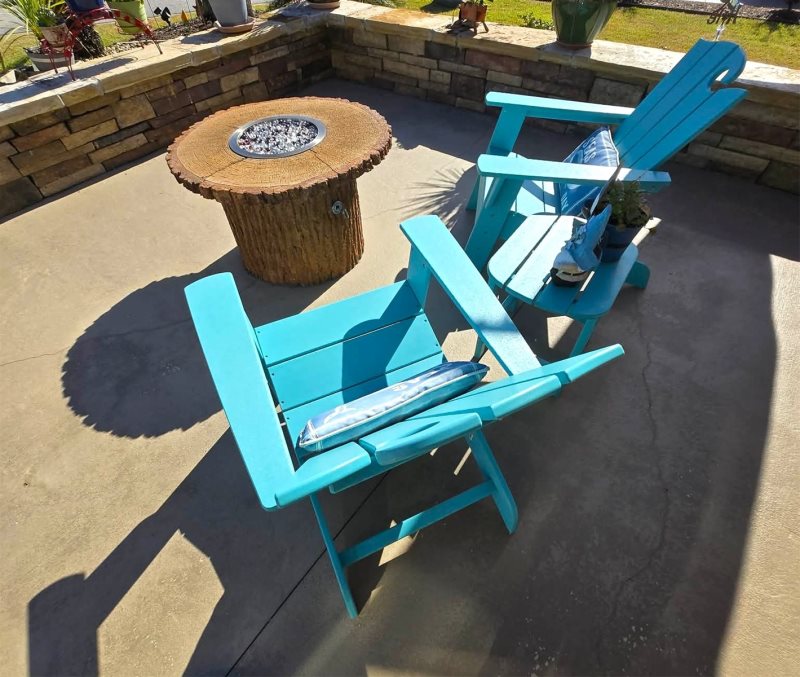 Just outside the patio, gather around a custom-built natural gas fire pit, surrounded by two low-profile lounge chairs and a side table, creating the perfect setting to enjoy peaceful evenings under the stars.