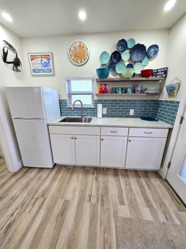 This Premium over-sized site located on the resort's coveted back terrace offers all the comforts of home for those enjoying full-time motorcoach living or a great getaway spot for the leisure RV traveler.  This North-facing lot features a custom-built 340 sq. ft. casita built in 2024.  A perfect spot for overnight guests, the casita has a living area with a Queen sleeper sofa, club chair & ottoman and TV.  The separate, private bedroom features a King bed, side tables and an armoire for clothes storage. For enjoying morning coffee or afternoon snacks, the kitchen is equipped with a 10 cu.ft. Hotpoint refrigerator, a sink with sprayer faucet and ample counter and cabinet space. There is a full bath with bathtub, shower and laundry hook-ups.  The casita is climate controlled with two mini-split HVAC units and is equipped with an electric on-demand full house water heater.  As you exit the casita and step out onto the 16' x 20' attached covered porch, there is no question that the outdoor living space was custom-made for enjoying and entertaining.  The large, covered patio features a beautiful wood inlay ceiling with recessed lighting and ceiling fans.   Enjoy grilling with friends on the outdoor kitchen featuring a Bull natural gas grill & large pot burner, a Big Green Egg smoker, a deep sink with sprayer faucet and a mini refrigerator.  You can enjoy the game on the mounted SunBrite outdoor TV and dine on the large table with seating for six.  There is additional outdoor seating available on the cushioned wicker conversation set with a sofa, two chairs and coffee & side tables.   On cooler evenings, gather with friends around the natural gas stacked stone fire pit on the four Berlin Gardens poly chairs. A separate 12' x 12' shed provides ample storage space for your golf cart, tools, beach supplies, etc.  There is a built-in work table and pegboard wall for use as a convenient workshop.  The shed is equipped with lighting and a window air conditioning unit.   Other lot amenities include a water feature and custom, irrigated landscaping.   Parcel is a fee-simple deeded property offering 4,499 sq ft.